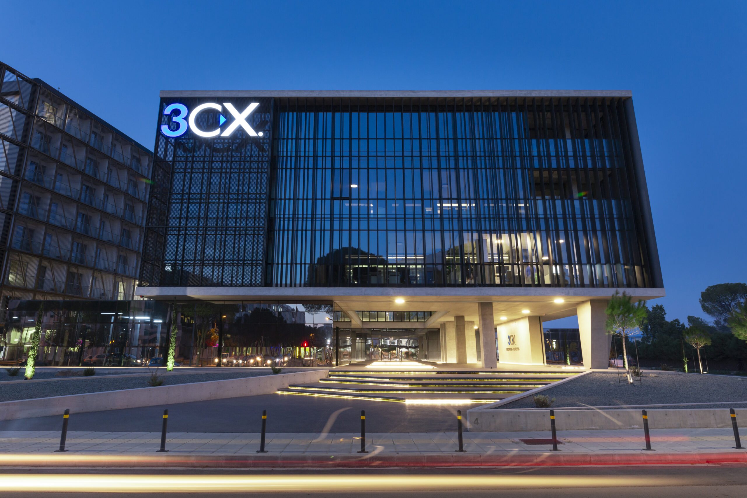 3CX in Nicosia, Cyprus, is a critically acclaimed office building designed by Seroff & Papadopoulos Architects, completed in 2018. The building is designed to look like a “hovering black box”. It features a main office structure raised on columns, creating an open ground-level space for social activities. The concept was to elevate the building above an open square. It was nominated for the prestigious EU Prize for Contemporary Architecture – Mies van der Rohe Awards 2019, and also received an award at the 8th Annual Invest Cyprus International Investment Awards in 2019 for the development of this headquarters.